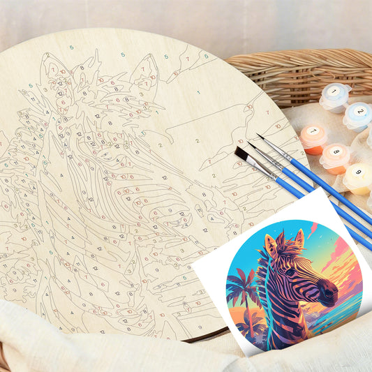 Zebra Portrait. DIY. Paint by numbers on Wood Slice.20cm