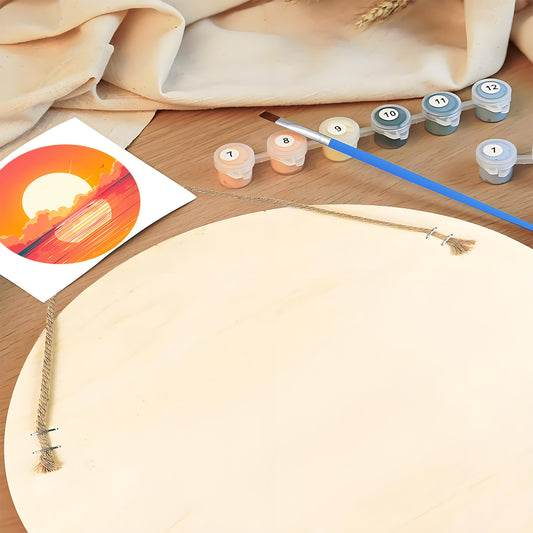 Sunrise over the sea DIY. Paint by numbers on Wood Slice.20cm.