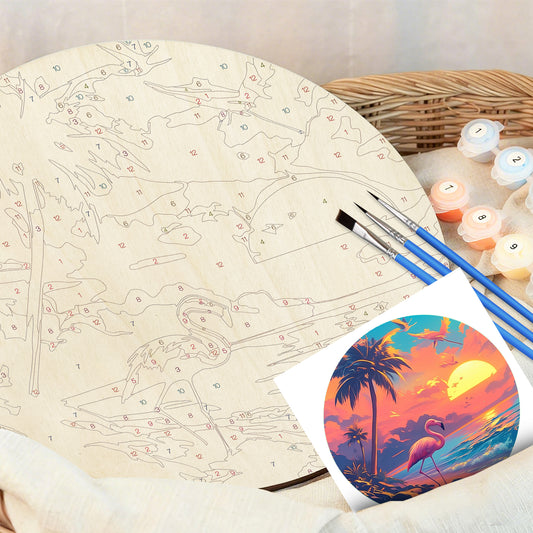 Sunset seascape painting. Paint by numbers on Wood Slice.20cm.