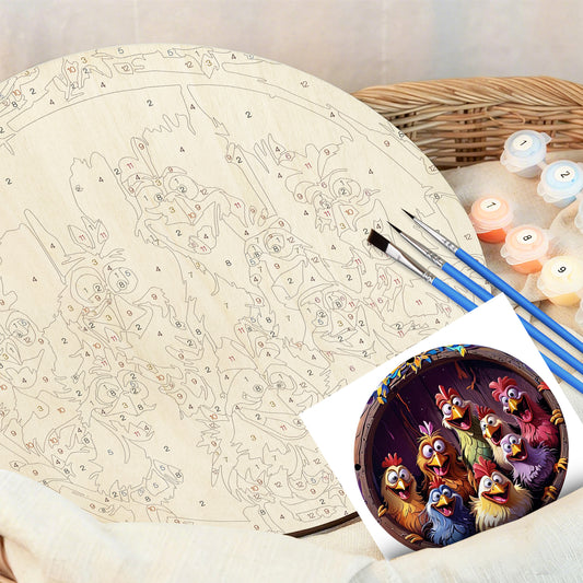 Rooster Party DIY. Paint by numbers on Wood Slice. 20cm.