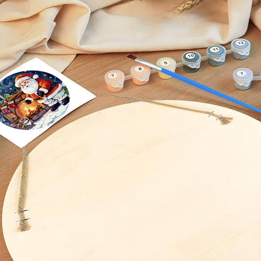 Santa with Gifts DIY. Paint by numbers on Wood Slice. 20cm.