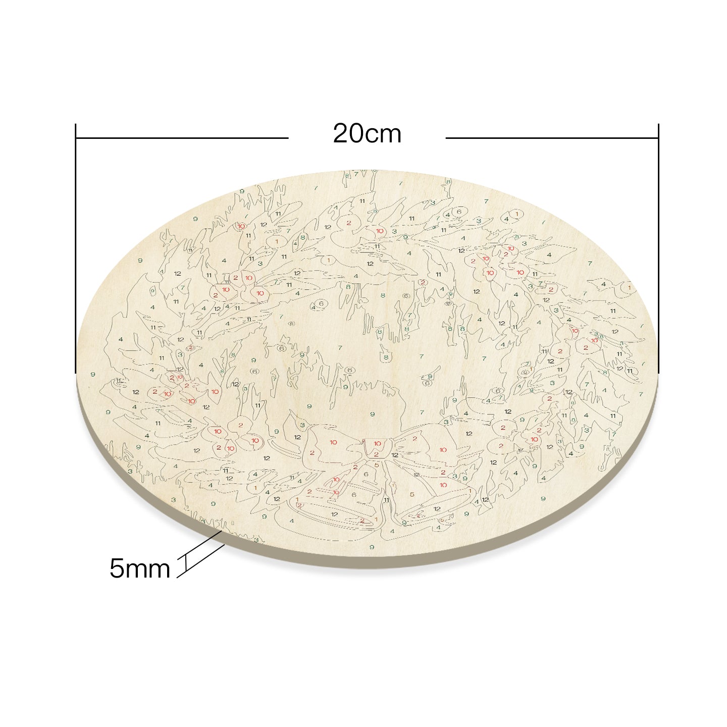 Christmas Wreath DIY. Paint by numbers on Wood Slice 20cm.