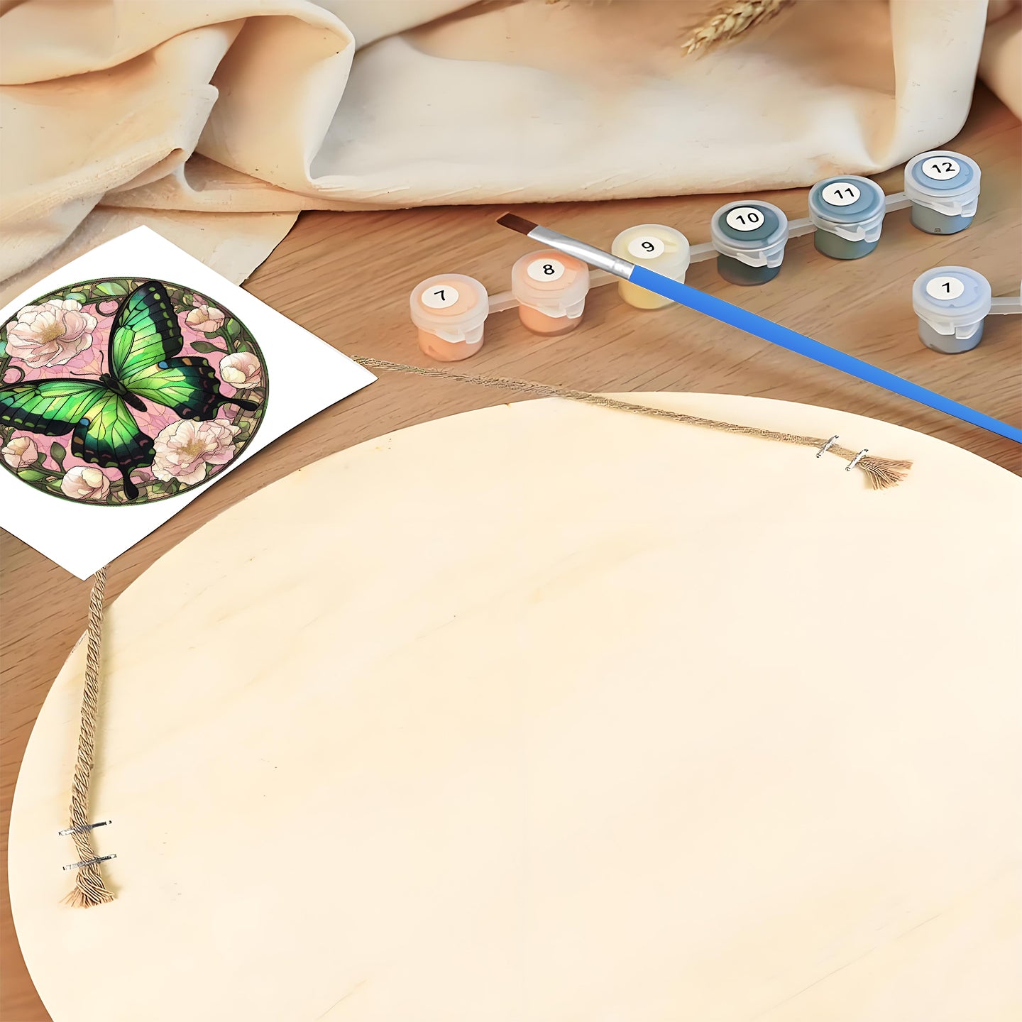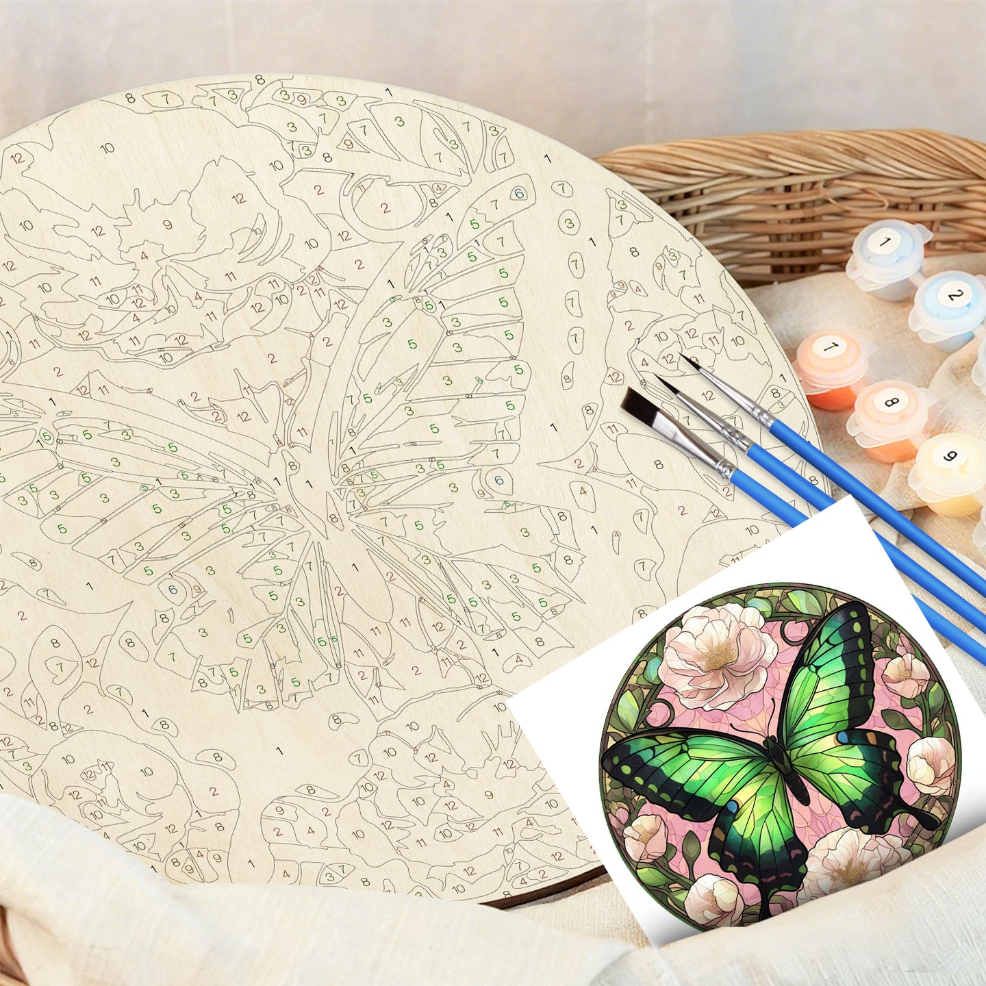 Enchanted Green Butterfly. Paint by numbers on Wood Slice.20cm