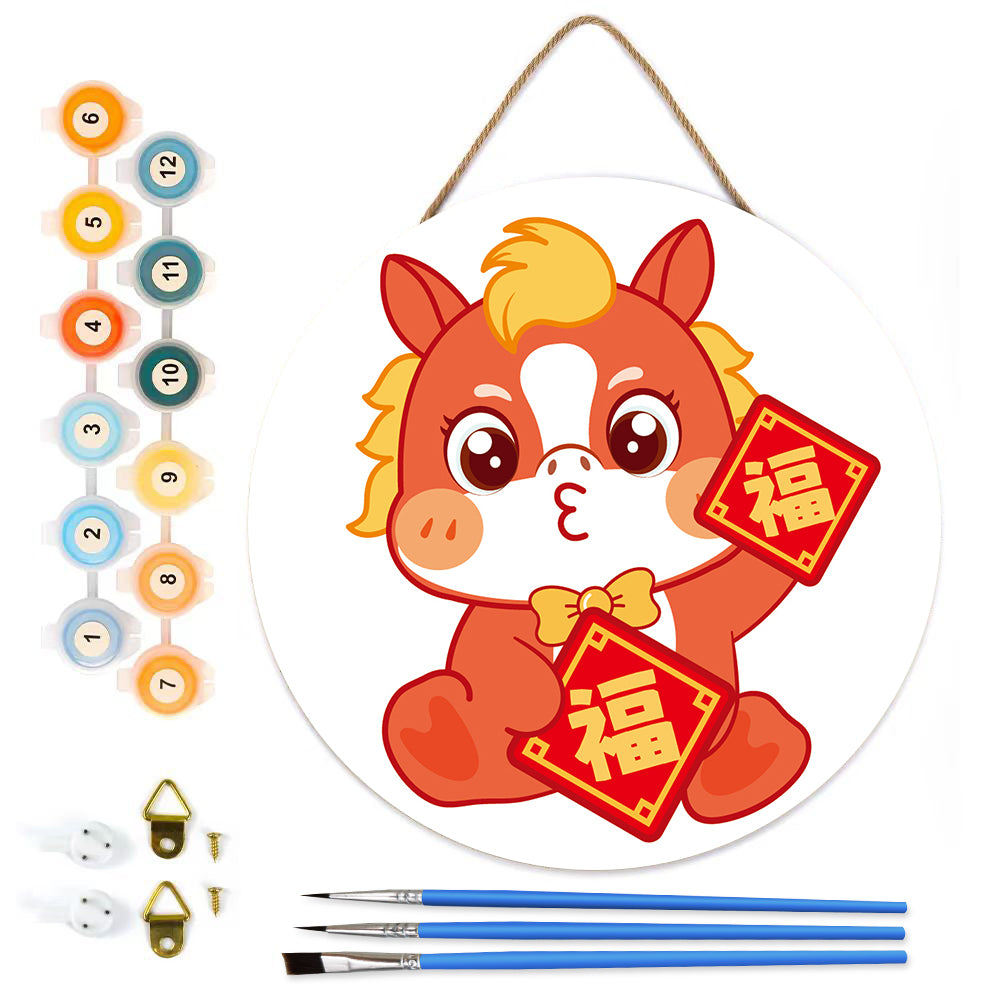 Fu Character Blessing. Paint by numbers on Wood Slice.20cm.