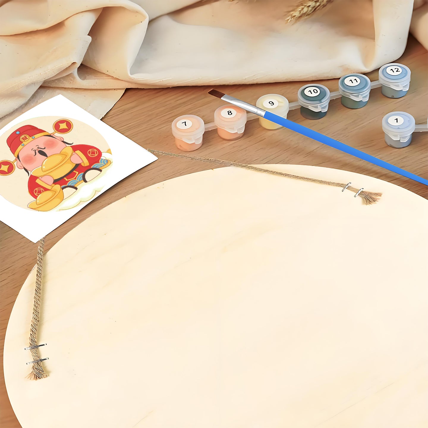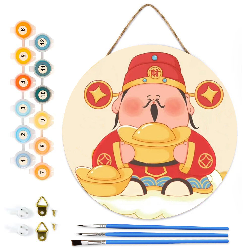 God of Wealth gives away gold ingots DIY. Paint by numbers on Wood Slice.20cm