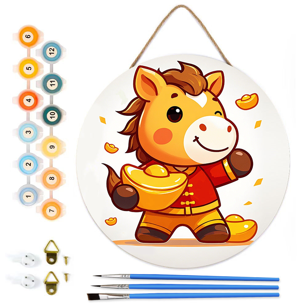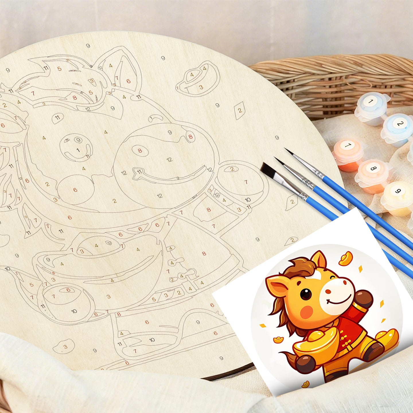 Golden Pony DIY. Paint by numbers on Wood Slice.20cm