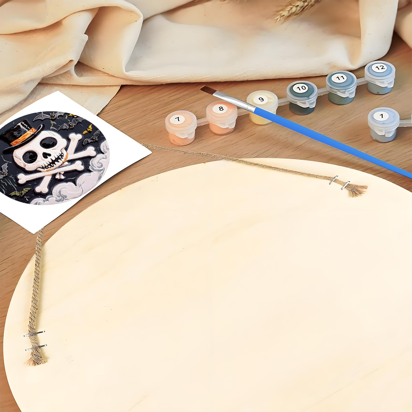 Halloween skulls DIY. Paint by numbers on Wood Slice. 20cm.