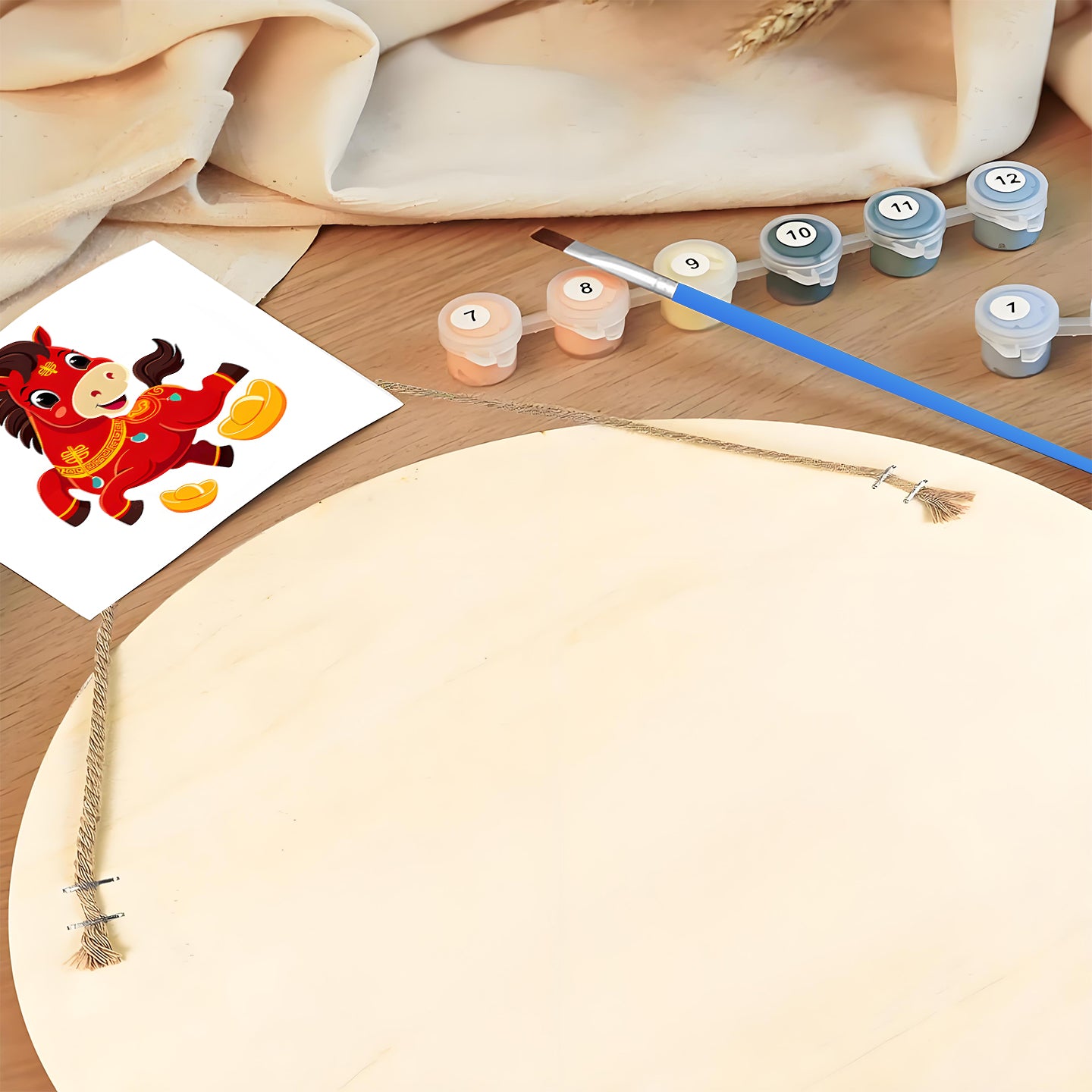 Lucky Chinese Red Pony. Paint by numbers on Wood Slice.20cm