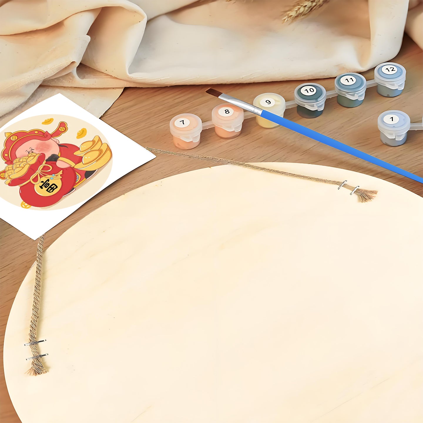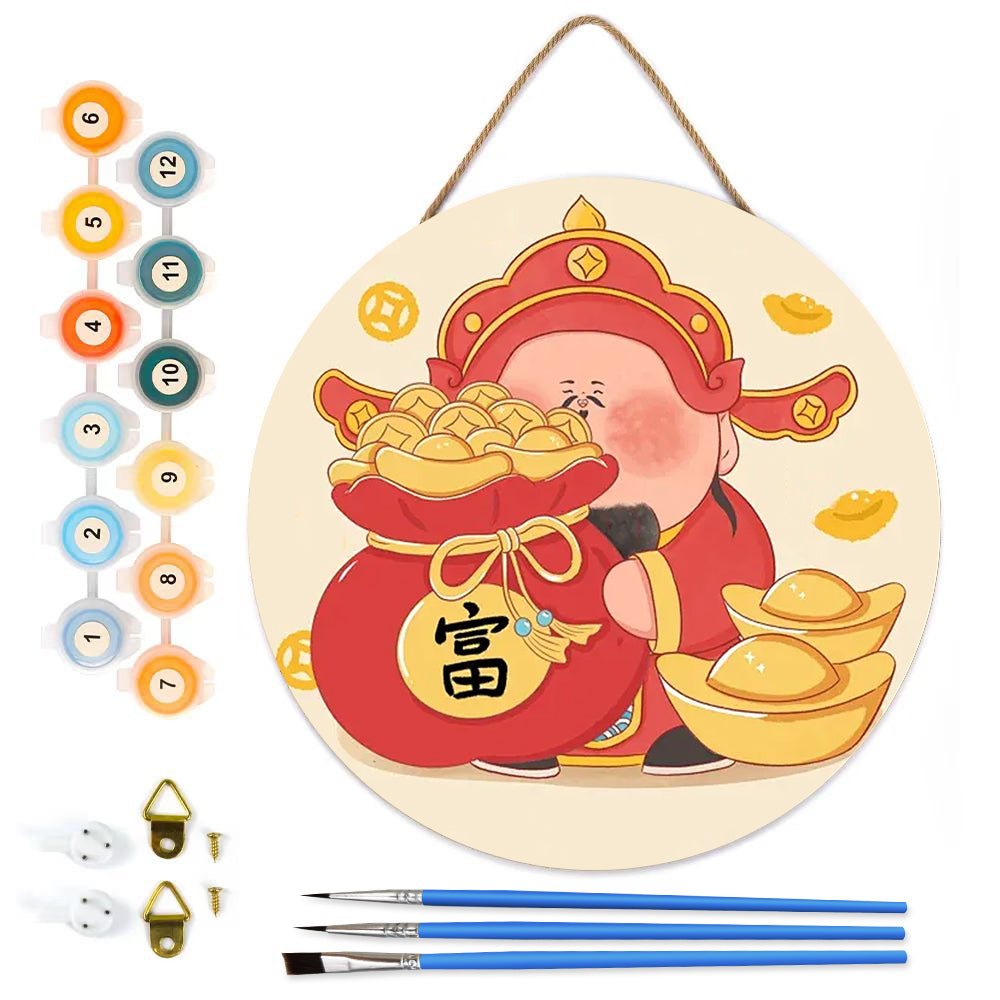 Lucky little chubby boy. Paint by numbers on Wood Slice.20cm