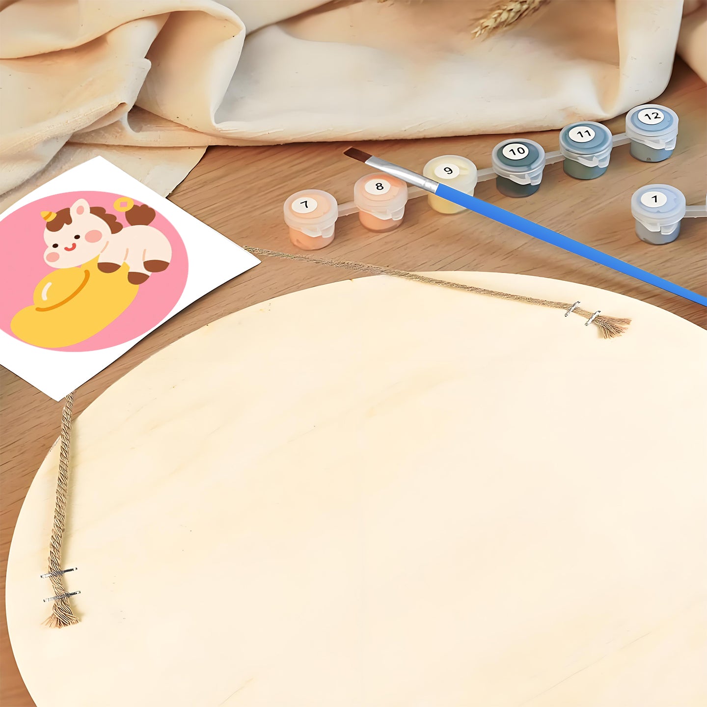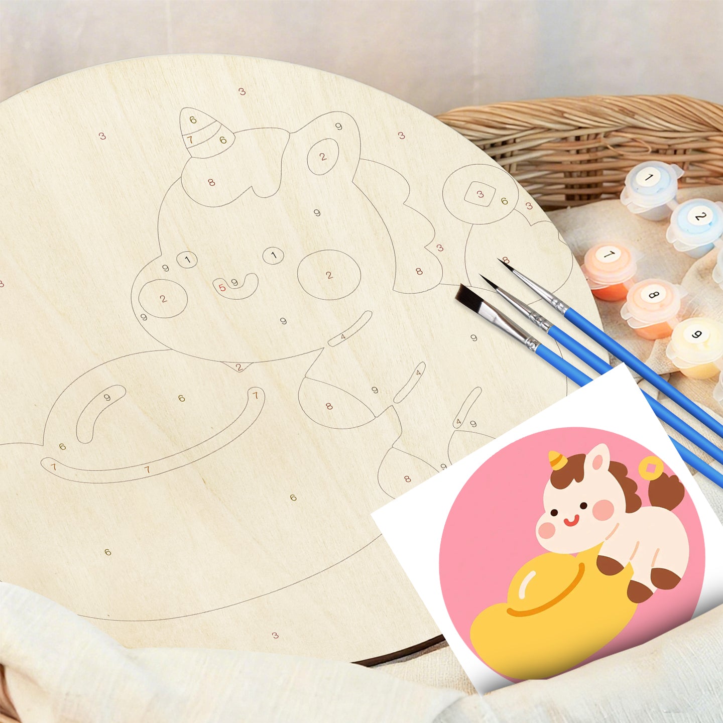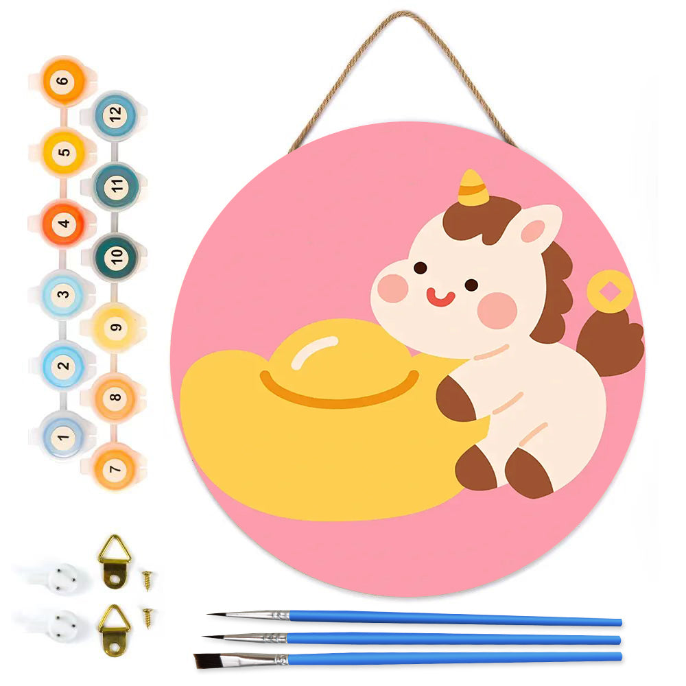 Lucky Pony and Fortune DIY. Paint by numbers on Wood Slice.20cm.