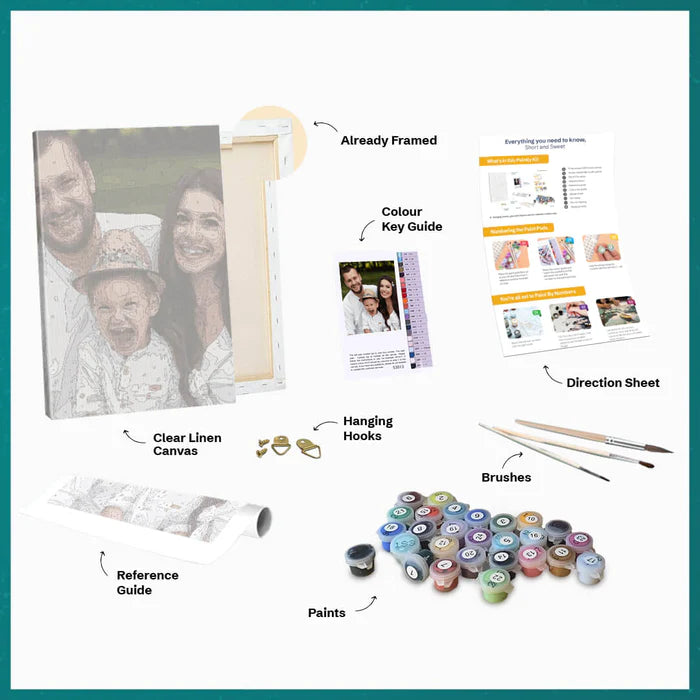 You get to customise the frame, size, canvas and number of colours for each of your kits. We are proudly the only brand in the world to offer this level of customisation.