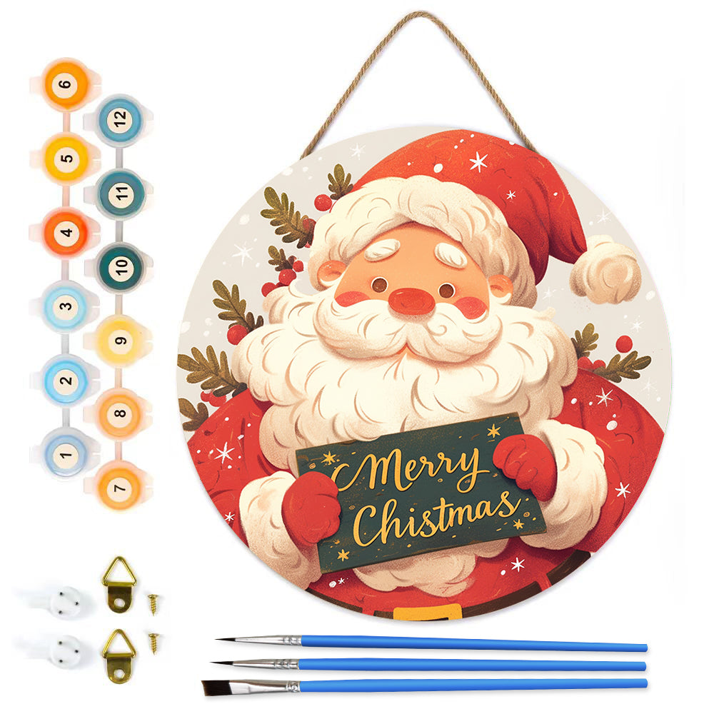 Red Santa Claus DIY. Paint by numbers on Wood Slice. 20cm.
