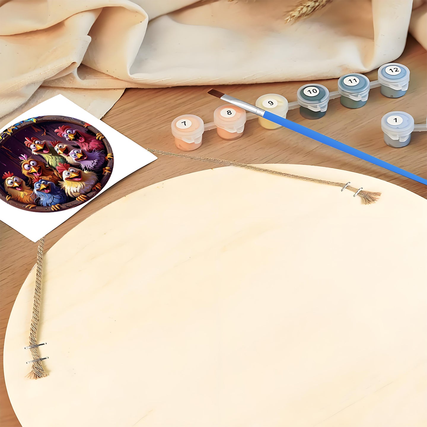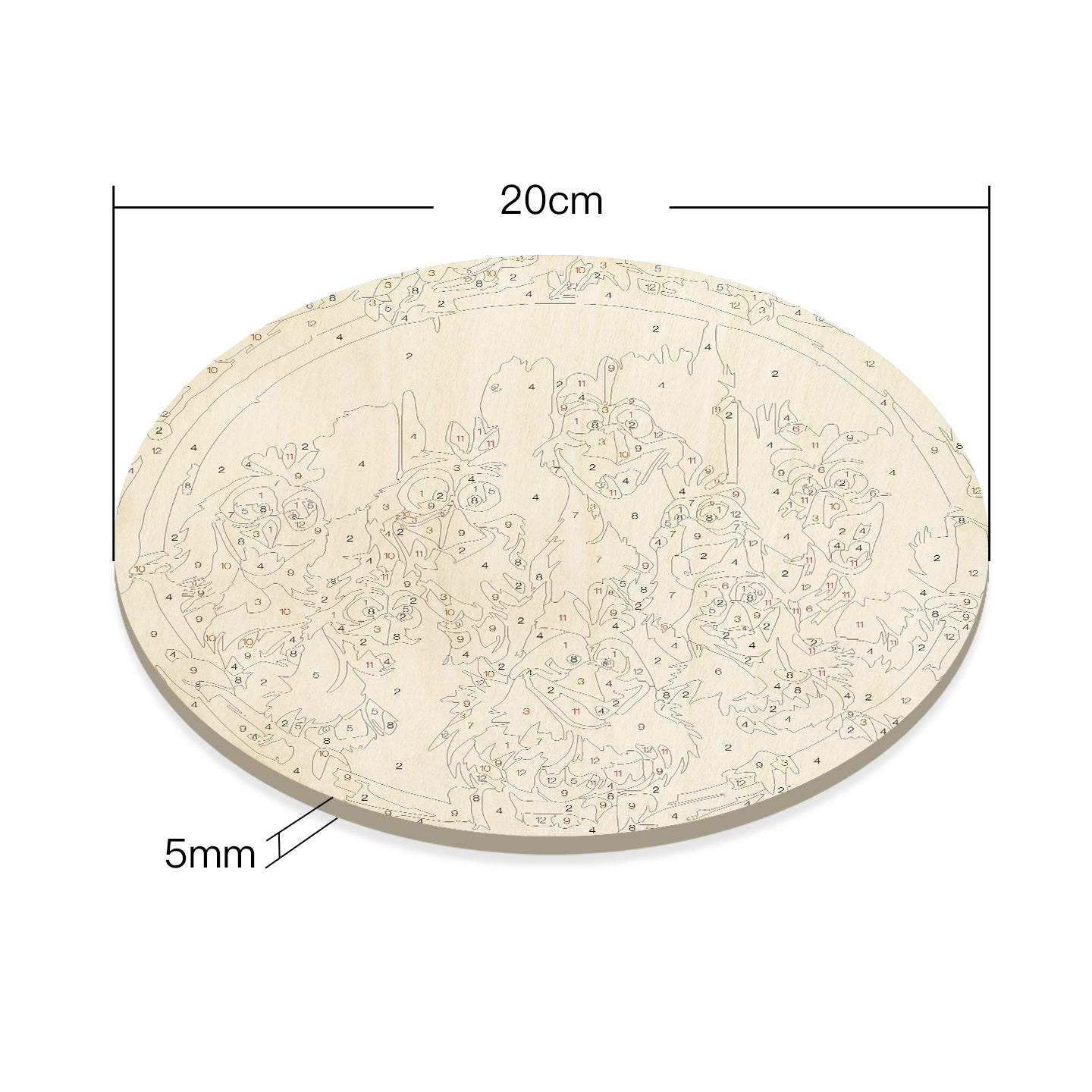 Rooster Party DIY. Paint by numbers on Wood Slice. 20cm.