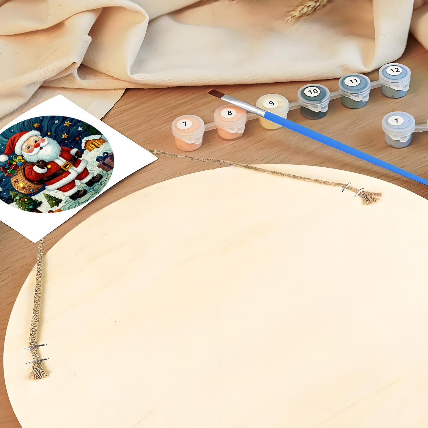 Santa with Gifts DIY. Paint by numbers on Wood Slice. 20cm.