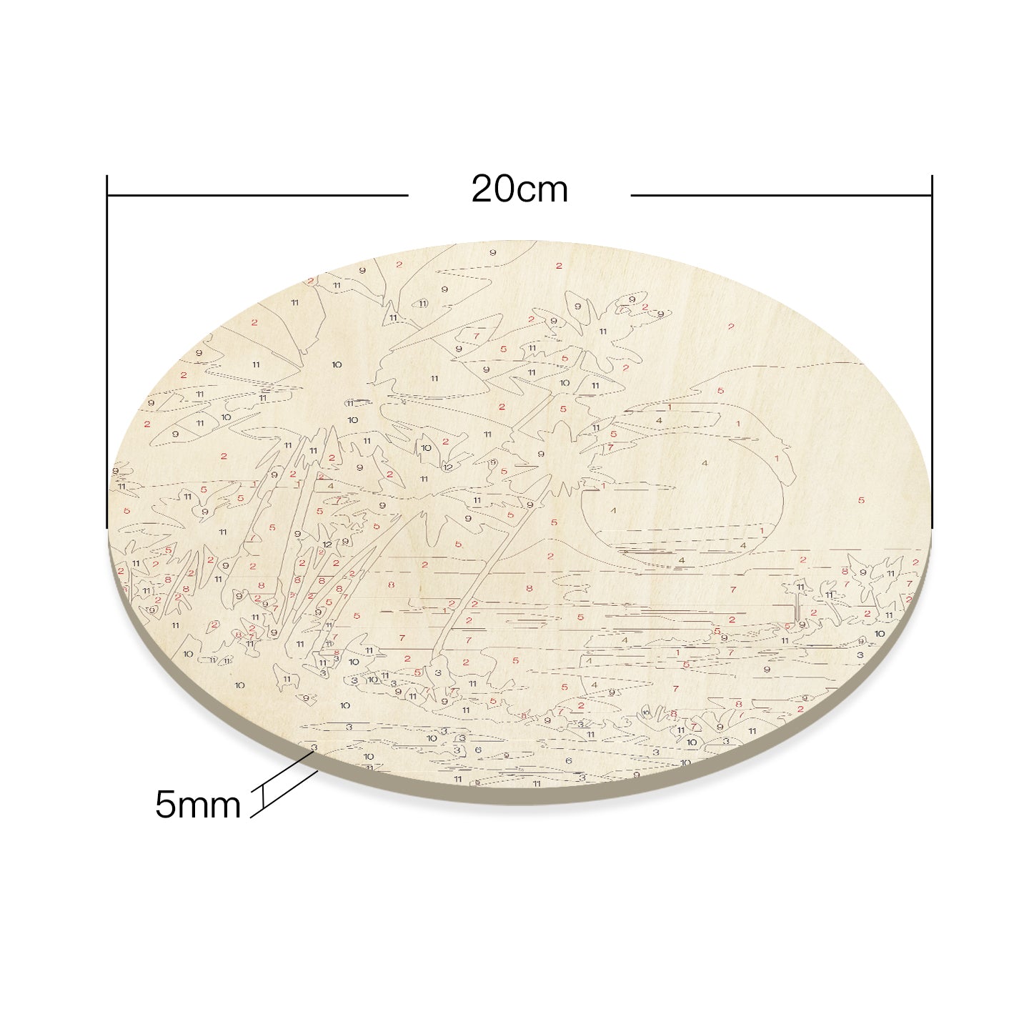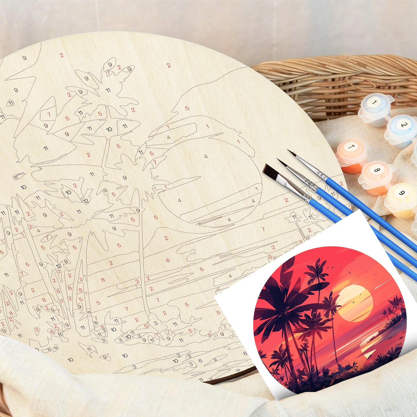 Sunset seascape painting. Paint by numbers on Wood Slice.20cm.