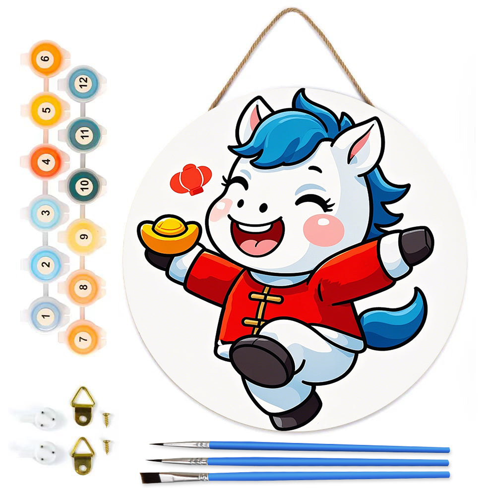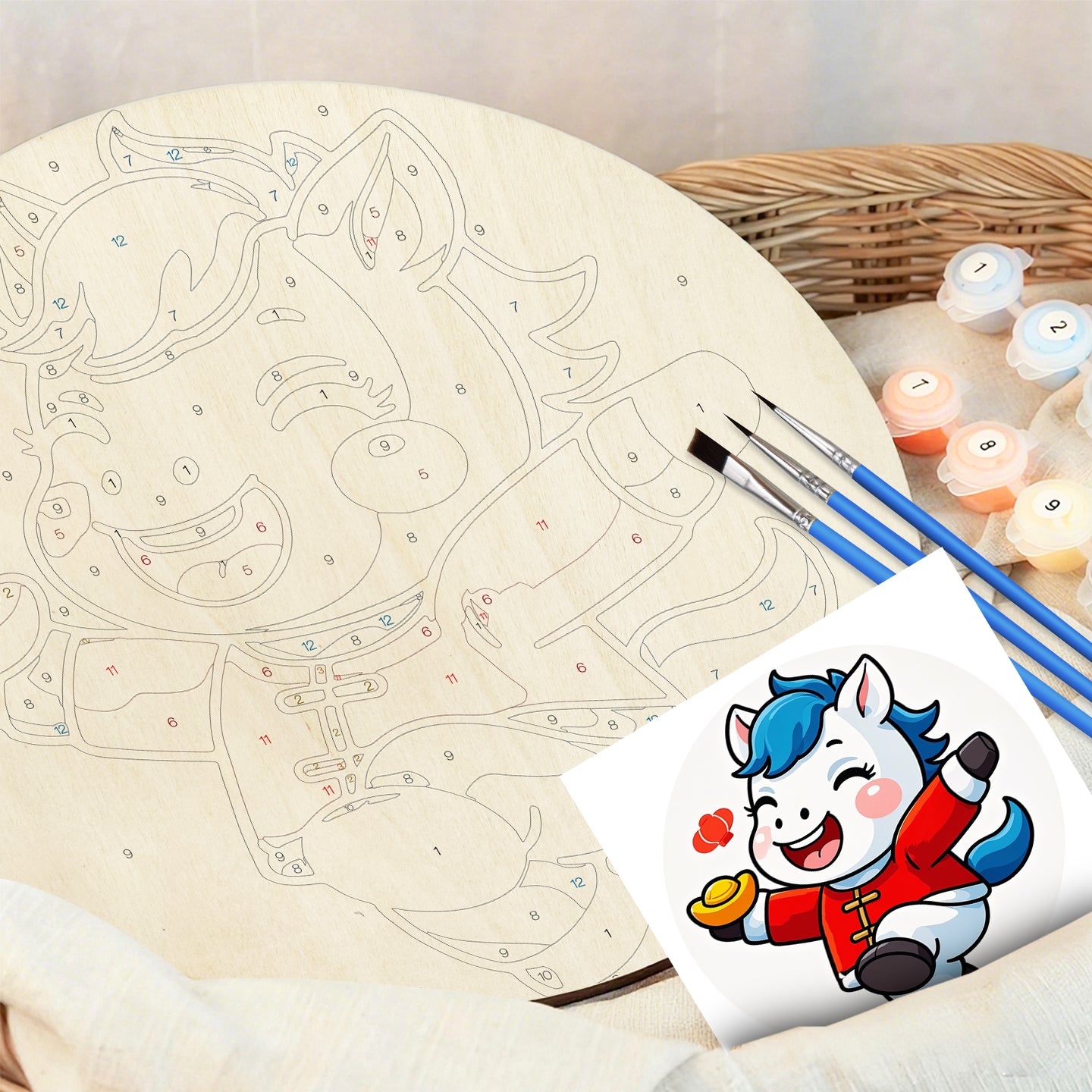 Year of the Horse. DIY. Paint by numbers on Wood Slice.20cm
